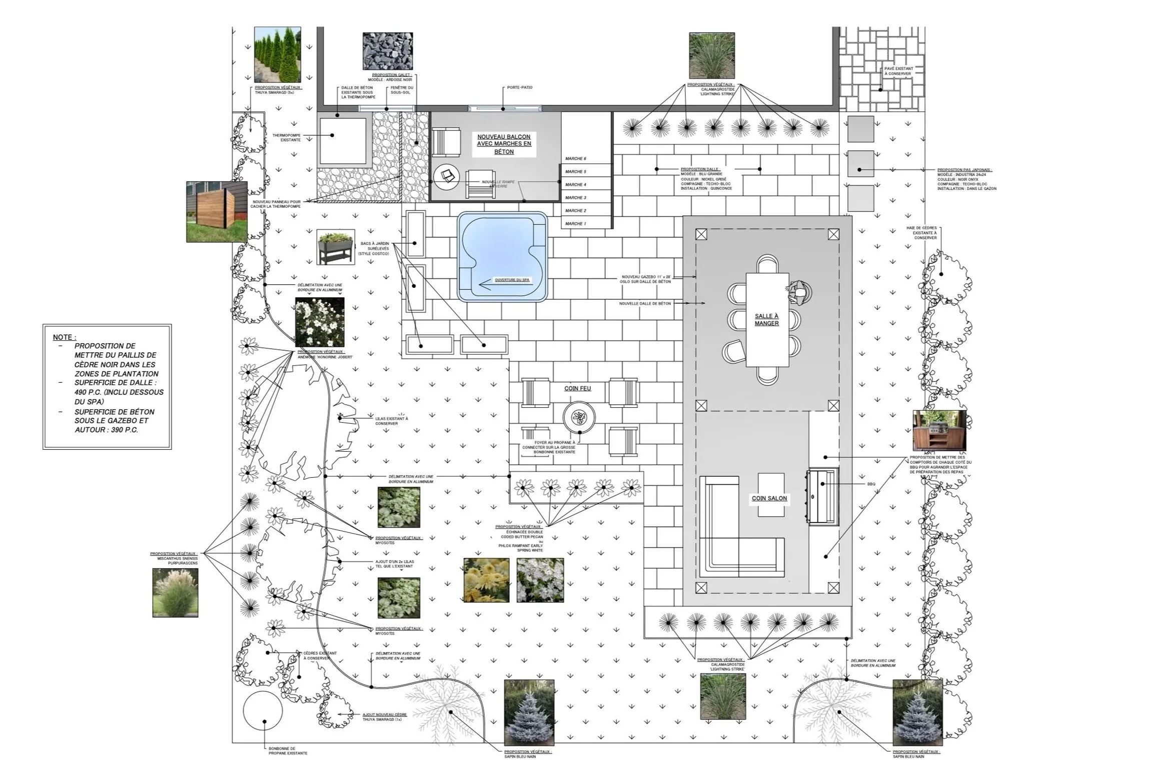 La première présente le concept d’aménagement accompagné des explications, des spécifications et des propositions de matériaux. La seconde inclut les mesures nécessaires à l’exécution des travaux, tandis que la troisième propose la sélection et l’implantation des végétaux pour le projet.